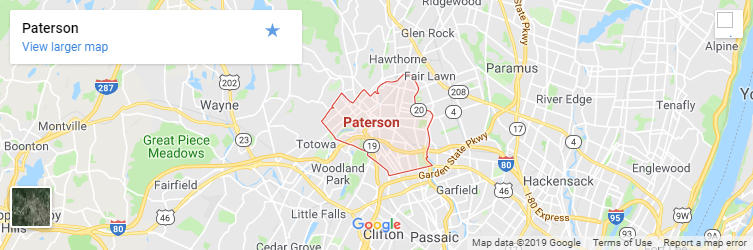 Paterson, New Jersey, home to 148,708 (2006 U.S. Census) people, is New Jersey’s third largest city. The densely populated city covers an area of 8-square miles in southeastern Passaic County, where Paterson is the county seat. Paterson’s residents are racially and ethnically diverse; the Census Bureau reports 50% Latino, 33% White, 33% Black and 23% Asian. Paterson’s neighbors include surrounding communities of the boroughs of Prospect Park, Haledon, Totowa, Woodland Park, Hawthorne and the City of Clifton in Passaic County as well as the boroughs of Elmwood Park and Fair Lawn in Bergen County.