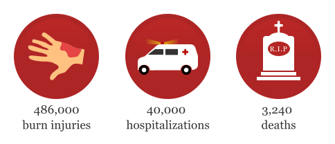 - 136,453 went to the emergency room for treatment of their burn injuries.